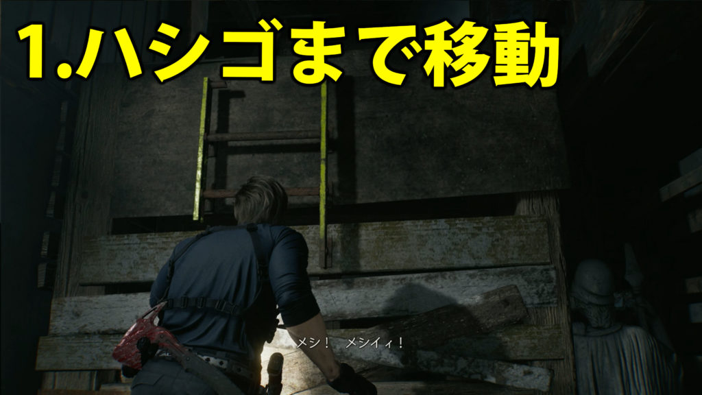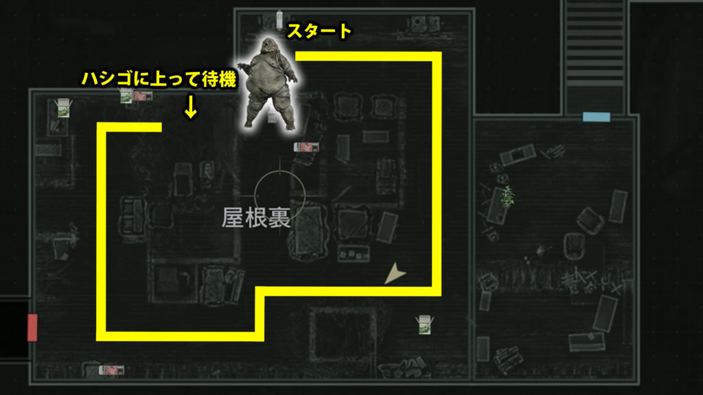 1.ドア破壊を確認してハシゴの位置まで移動