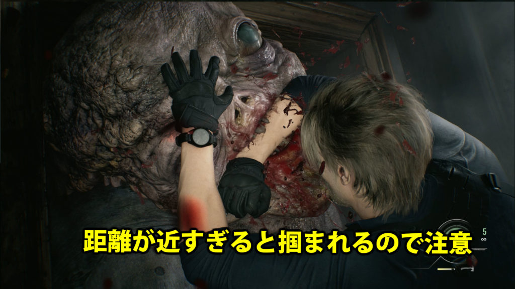 ドア前攻撃の際、距離が近いとチャンクに掴まれてしまうので少し離れて撃つようにしましょう。