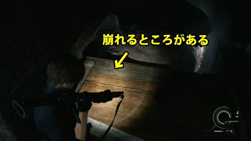 チャンクを攻撃して落とすと、ハシゴの前部分が崩れます。